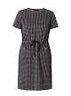 Sukienka z krótkim rękawem z miękkiej dzianiny. Sukienka ma okrągły dekolt, dwie kieszenie z przodu i sznurek w pasie podkreślający talię.
