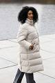Ten gruby zimowy płaszcz jest podszyty sztucznym termicznym puchem, co zapewnia dodatkowe ciepło i wygodę.