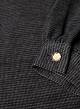 Ta elegancka kurtka dzianinowa ma drobną kratkę i klasyczny kołnierzyk zapinany na guziki.