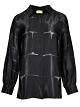 Przepiękna satynowa koszula w nowoczesnym wydaniu. Miękki układający się kołnierzyk, długi rękaw , lejący materiał. Prześwity w łączeniu materiału pięknie zdobią skórę , dzięki temu rozświetla ,a nadaje charakteru głębokiej czerni.